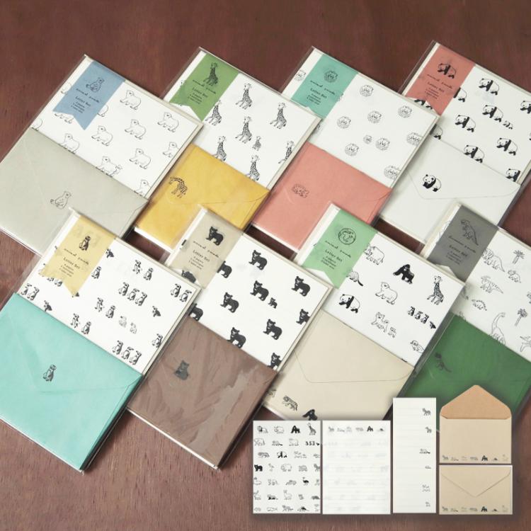 便箋の筆記面に親子のイラスト、宛名ラベルもあり、可愛さと使いやすさも兼ね備えたレターセットです。