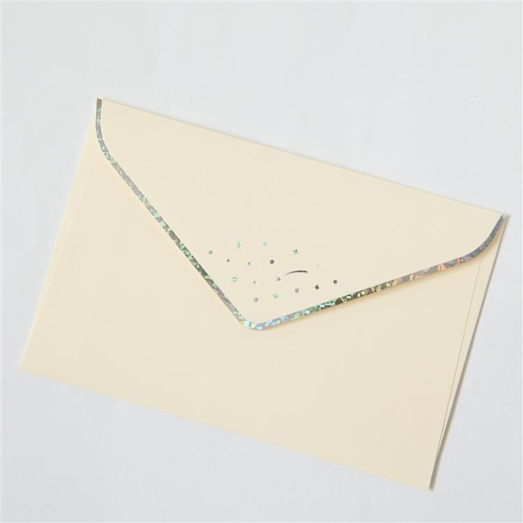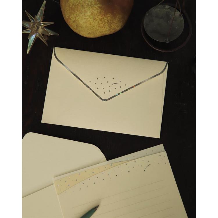 便箋と封筒にホログラム箔を散りばめたレターセット。