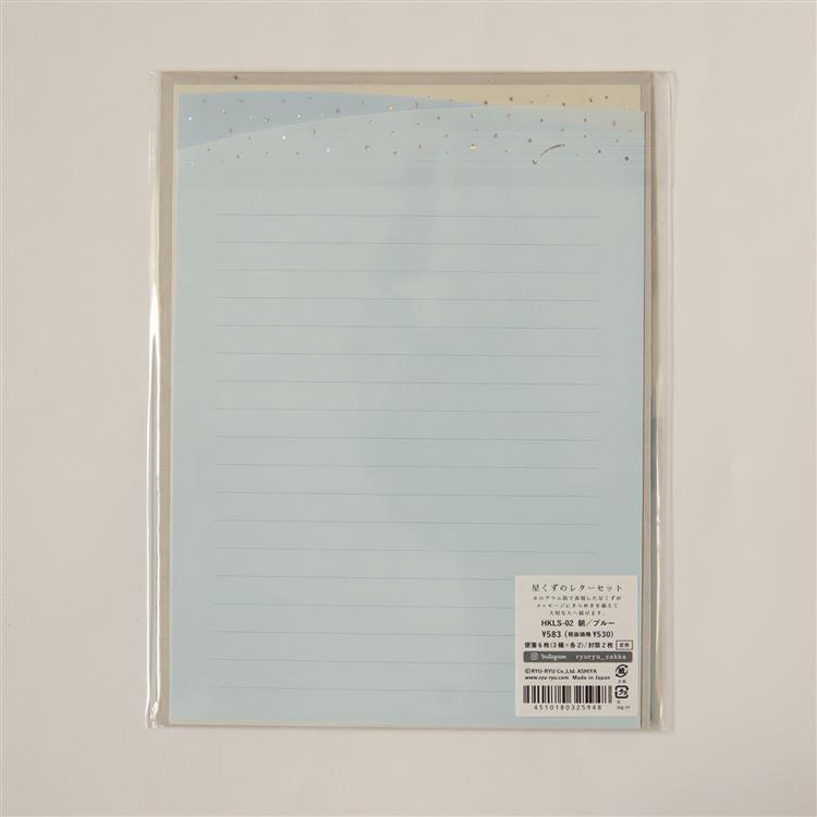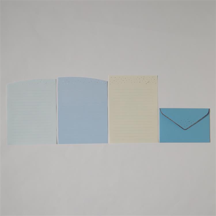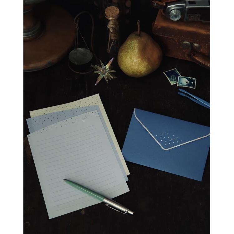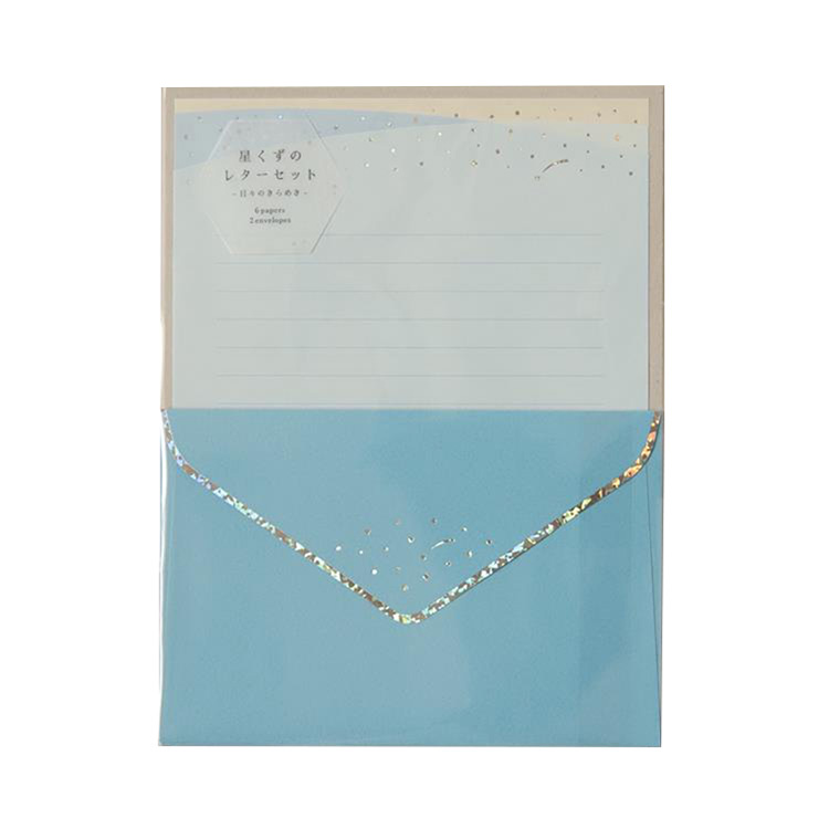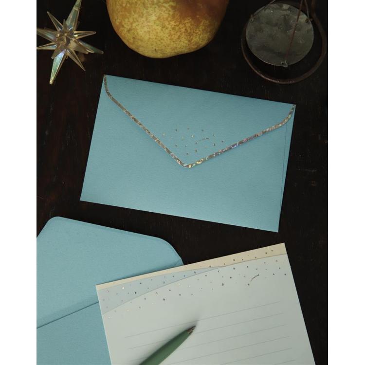 便箋と封筒にホログラム箔を散りばめたレターセット。