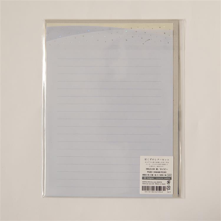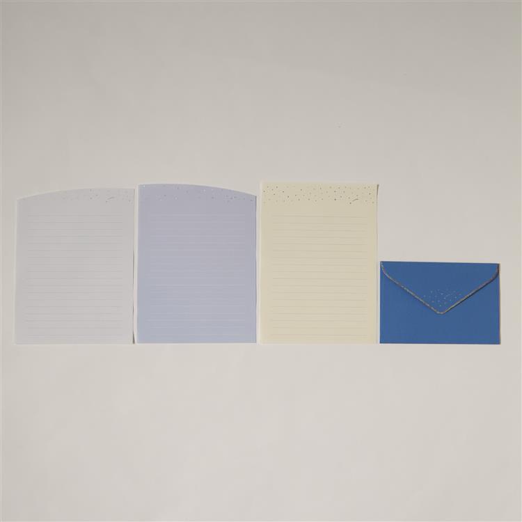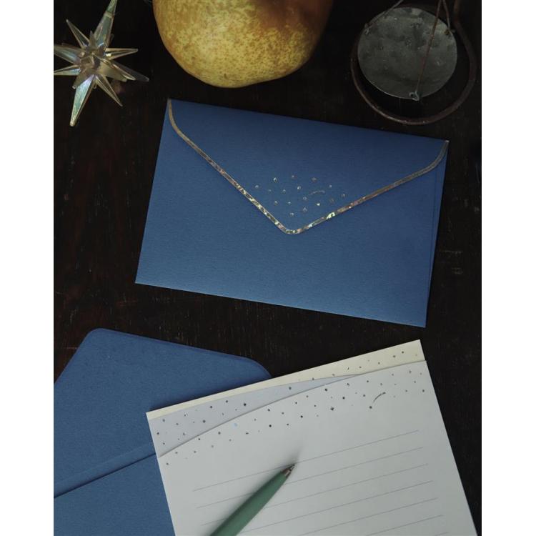 3種類の形の異なる便箋は、重ねることで風景のように見え、「夜」をイメージした色を楽しむことができます。