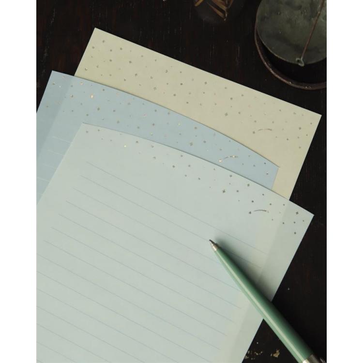 便箋と封筒にホログラム箔を散りばめたレターセット。