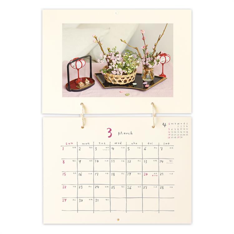 和の雑貨とお花をスタッフがスタイリング、撮影、アレンジした花々が毎月優しく心を和ませてくれるカレンダーです。