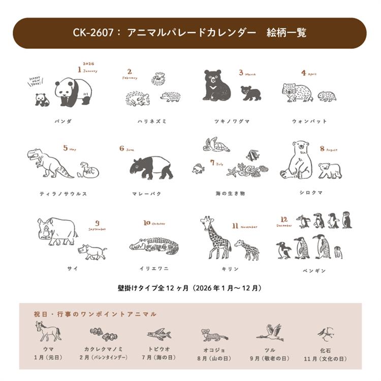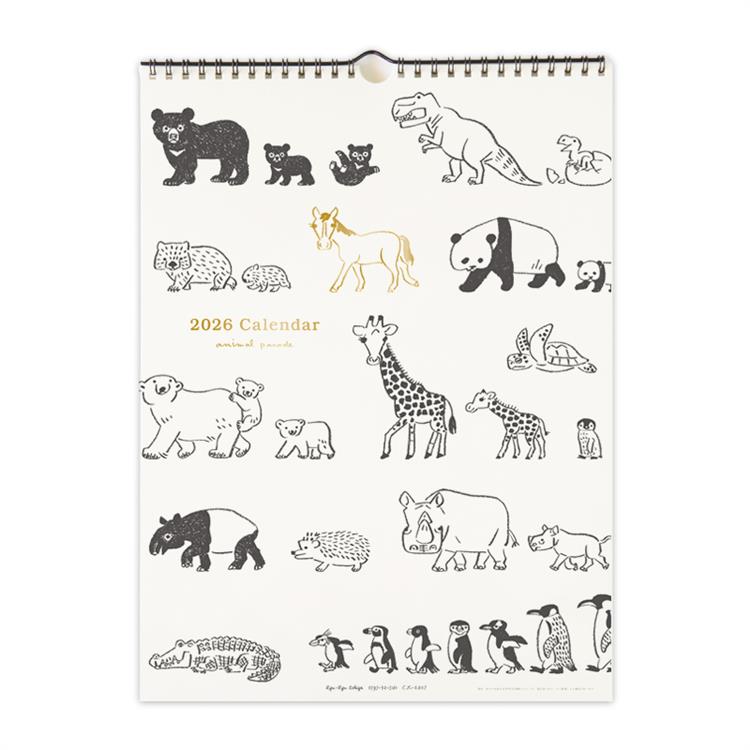- 2026年1月始まりカレンダー 壁掛け アニマルパレード