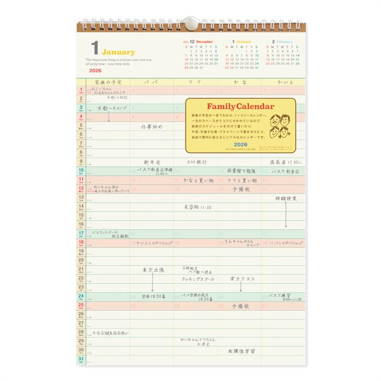 - 2026年1月始まり 壁掛け ファミリーカレンダー