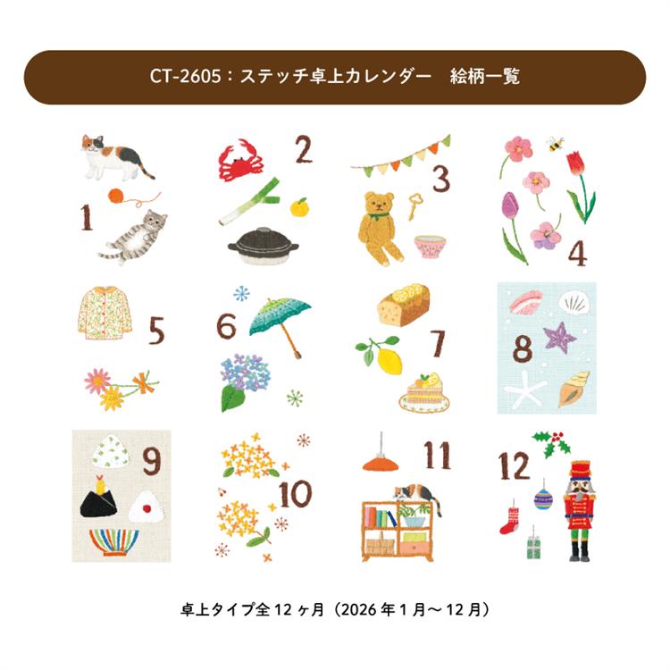 - 2026年1月始まりカレンダー 卓上 ステッチ