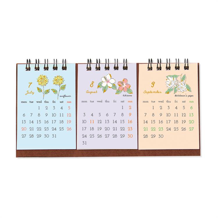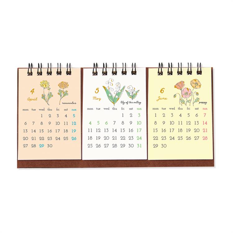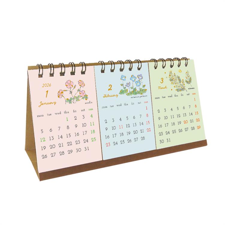 2026年1月始まりカレンダー 卓上 3ヶ月 フラワー