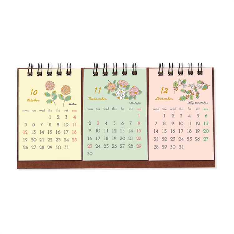 - 2026年1月始まりカレンダー 卓上 3ヶ月 フラワー