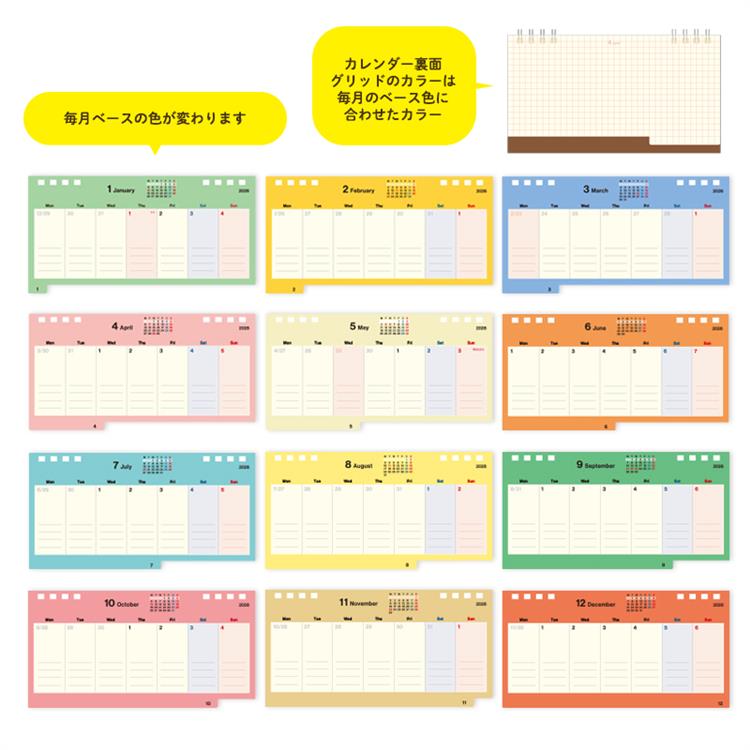 2026年1月始まりカレンダー 卓上 週間 マンスリー付き