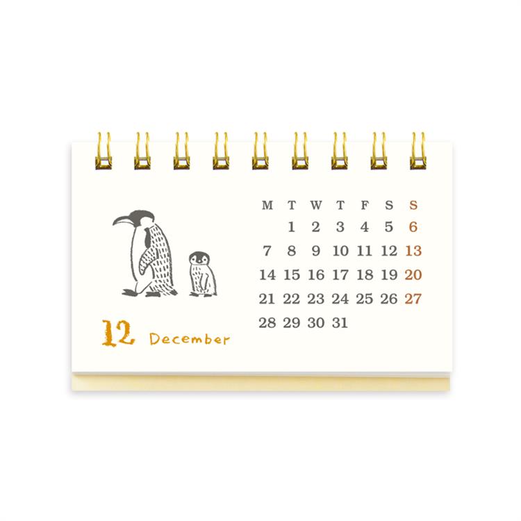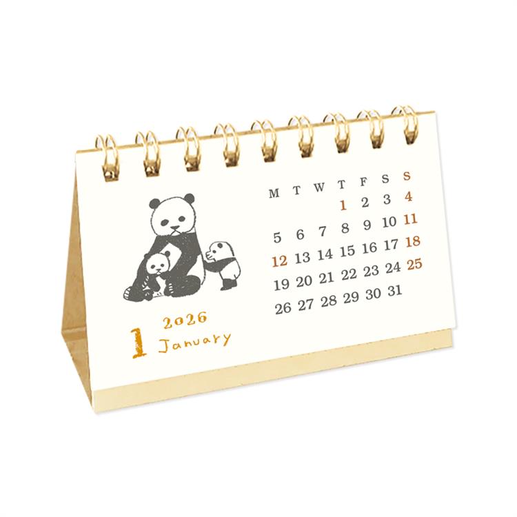 - 2026年1月始まりカレンダー 卓上 名刺サイズ アニマルパレード
