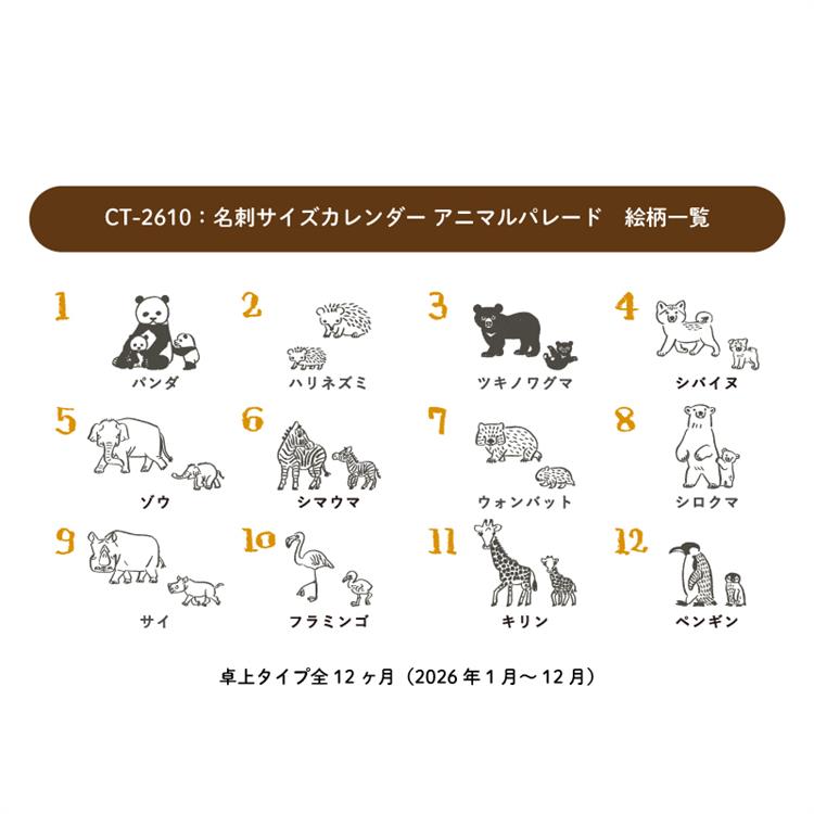 2026年1月始まりカレンダー 卓上 名刺サイズ アニマルパレード