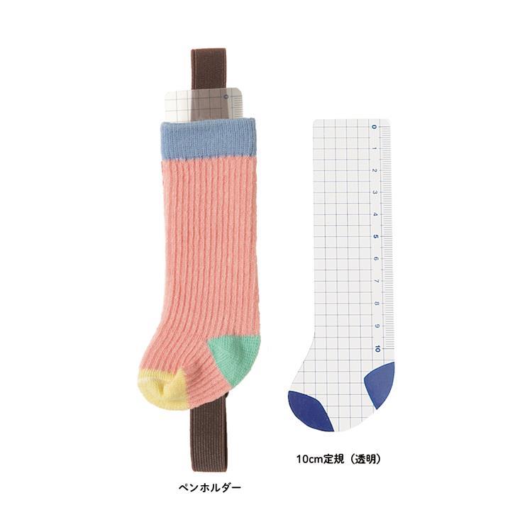 付属の靴下型定規にペンのクリップを挟むことで、ペンがしっかりと固定されます。