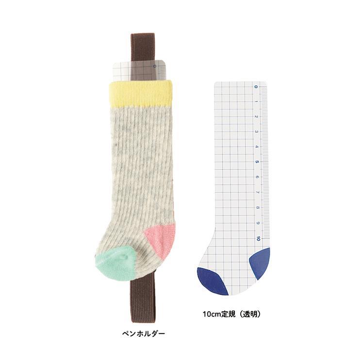 付属の靴下型定規にペンのクリップを挟むことで、ペンがしっかりと固定されます。