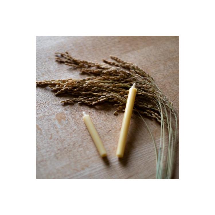 お米のろうそくは、お米のヌカに含まれる蝋(ろう)のみで作られ、蝋の素材そのままの色を生かした シンプルで飽きのこないろうそくになります。
