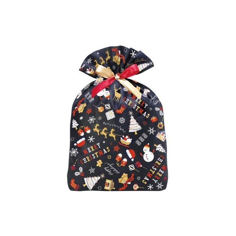 シックで上品なネイビーカラーのクリスマス巾着バッグ