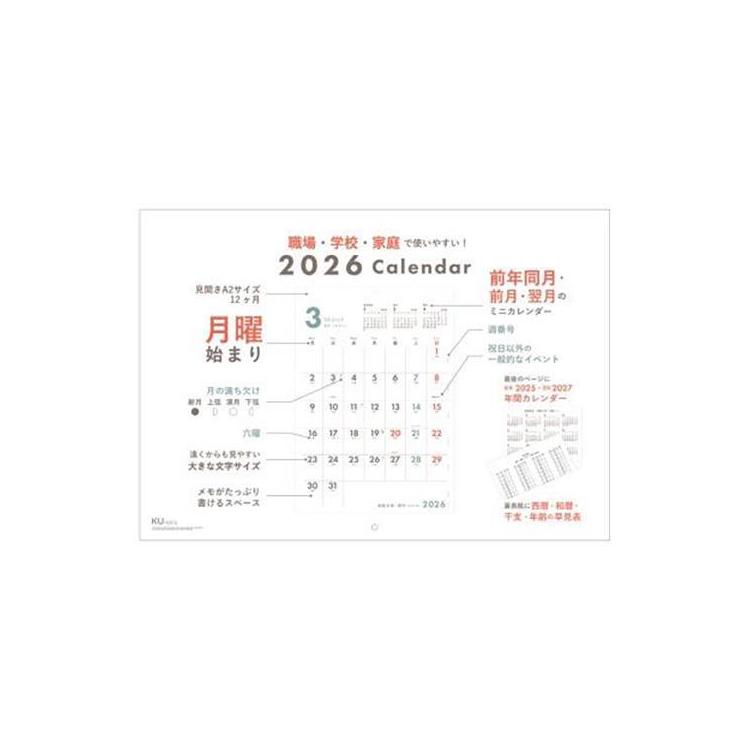 機能性抜群のシンプルなA3サイズカレンダー