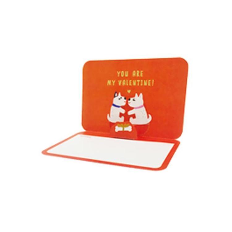 カードをひらくと犬のカップルがキスするバレンタインカード