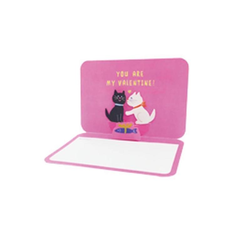 カードをひらくと猫のカップルがキスするバレンタインカード