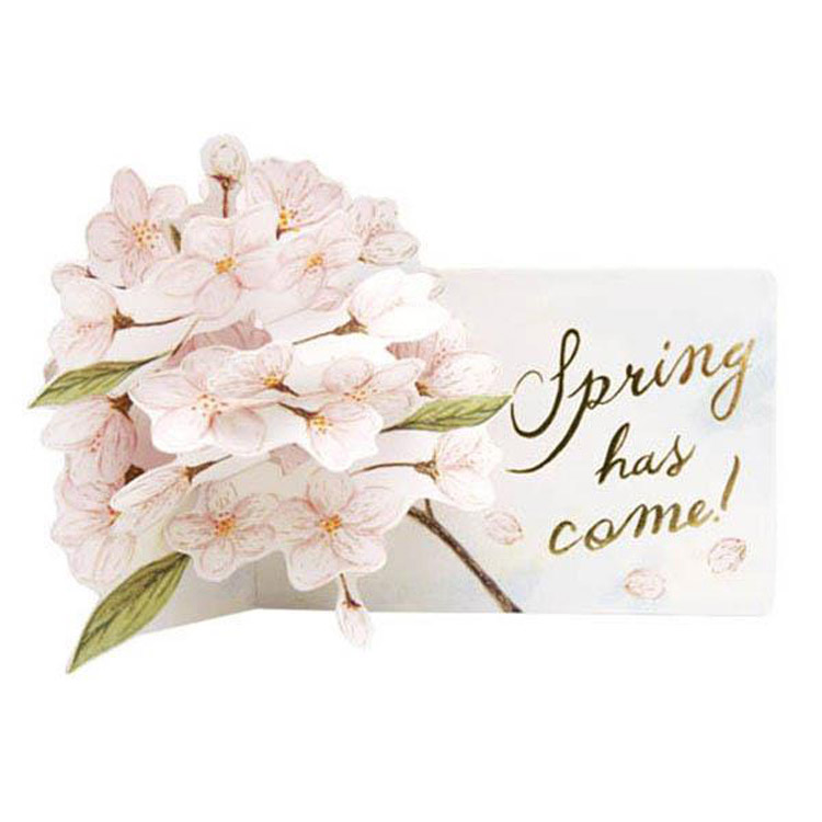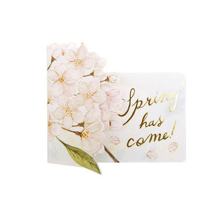 広げた状態で立てて飾ることが出来きるオシャレな桜モチーフのメッセージカードです。