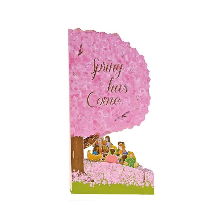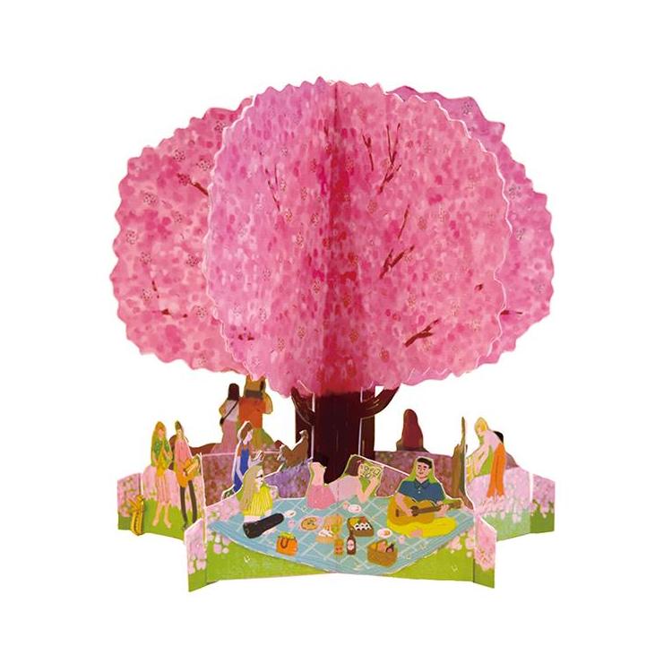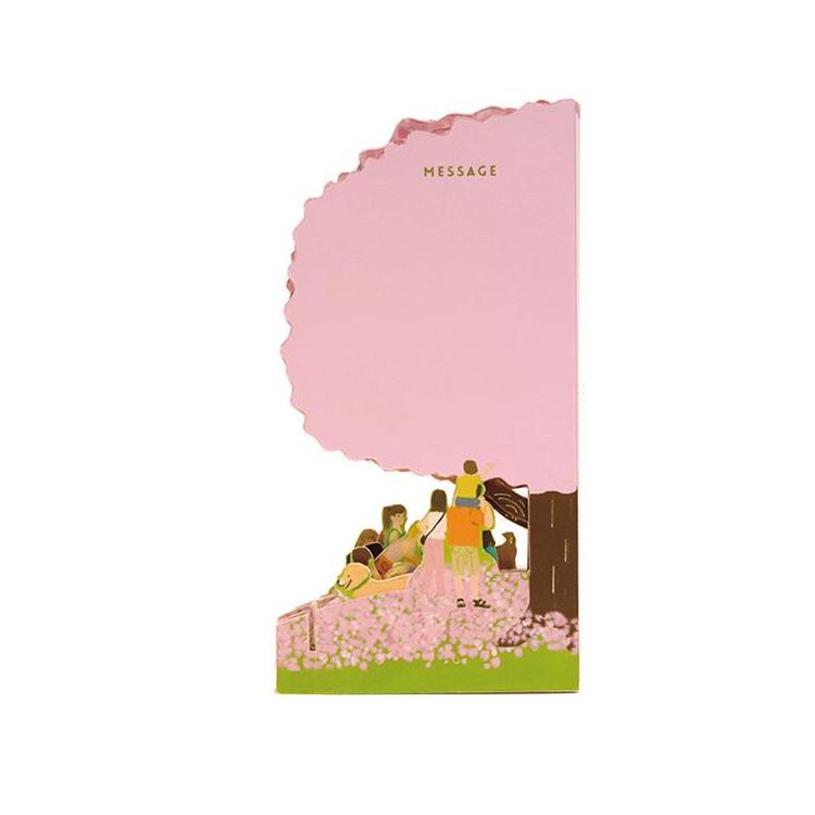 桜の木の下でお花見をする様子が見ていて楽しい ポップアップ型・春柄カード。