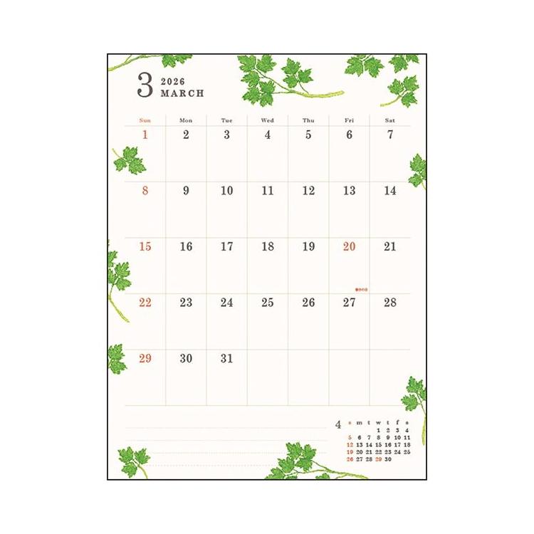 ハーブや野菜、カトラリーなど米津祐介さんが描くナチュラルなイラストのカレンダー