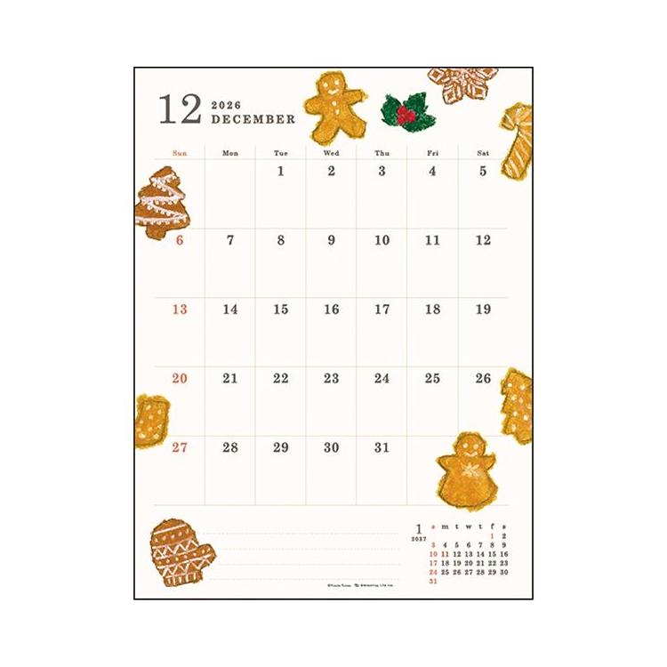 2026年1月始まりカレンダー 壁掛け 米津祐介 リラクシング