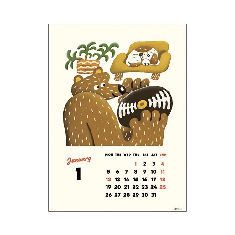 人気イラストレーターOKATAOKAさんが描く動物たちのカレンダー。