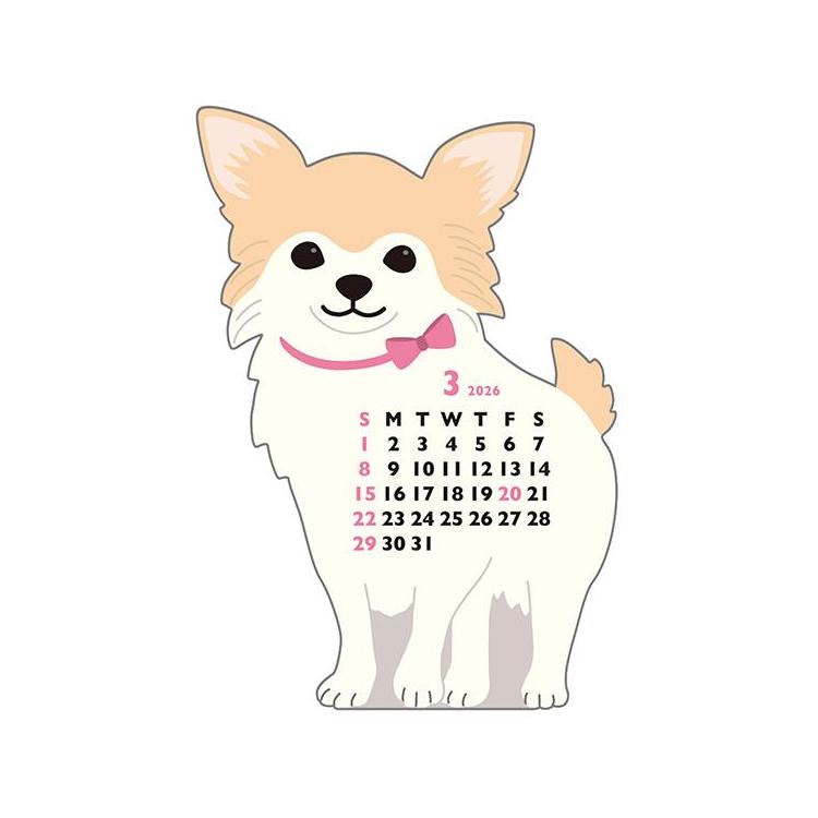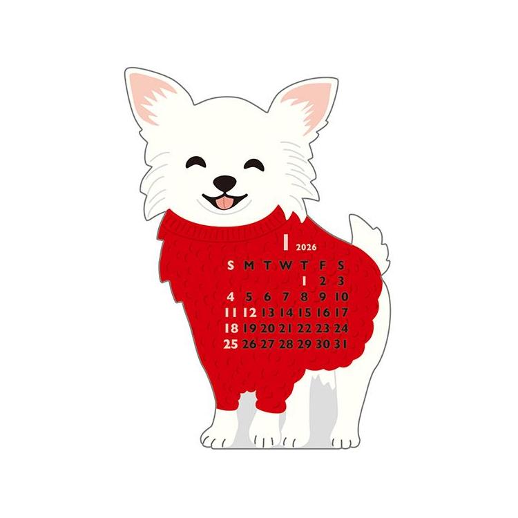 - 2026年1月始まりカレンダー 卓上 アニマルダイカット ミニ チワワ