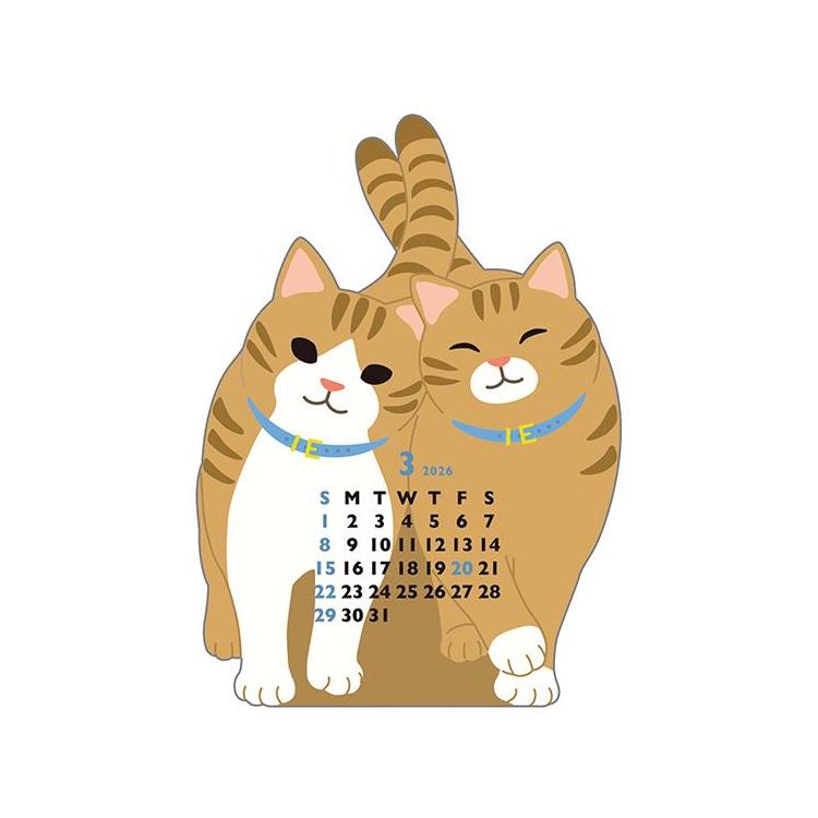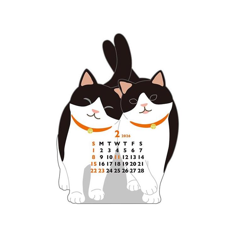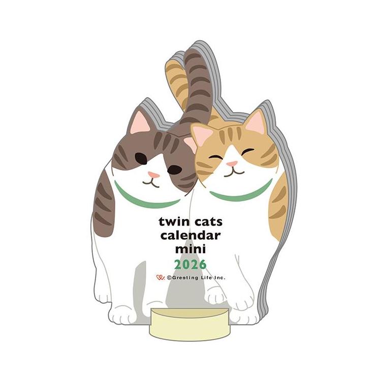 - 2026年1月始まりカレンダー 卓上 アニマルダイカット ミニ ふたごねこ