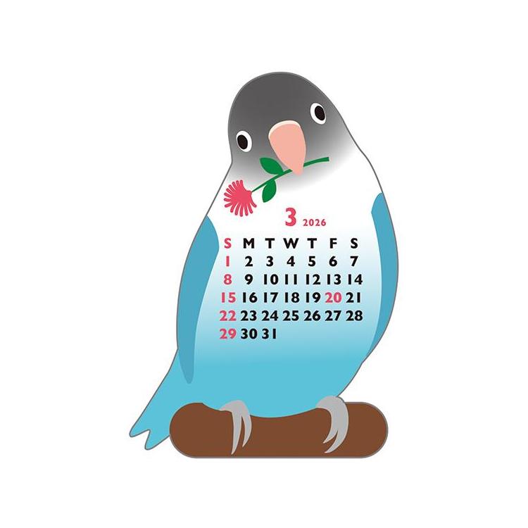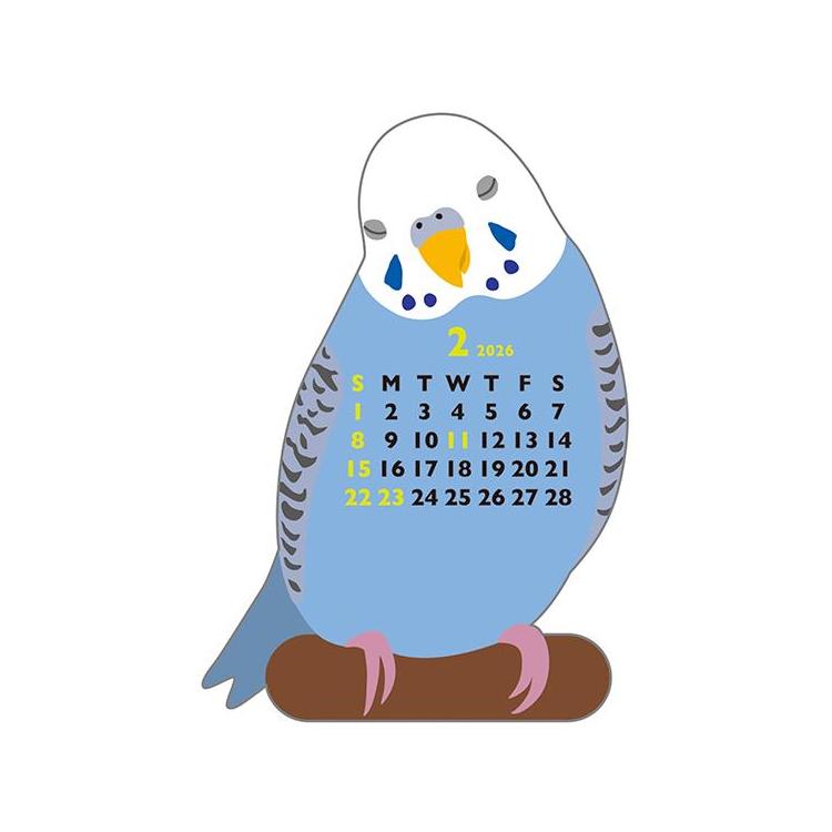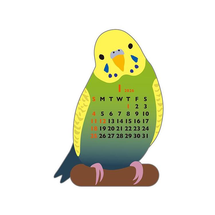 - 2026年1月始まりカレンダー 卓上 アニマルダイカット ミニ インコ