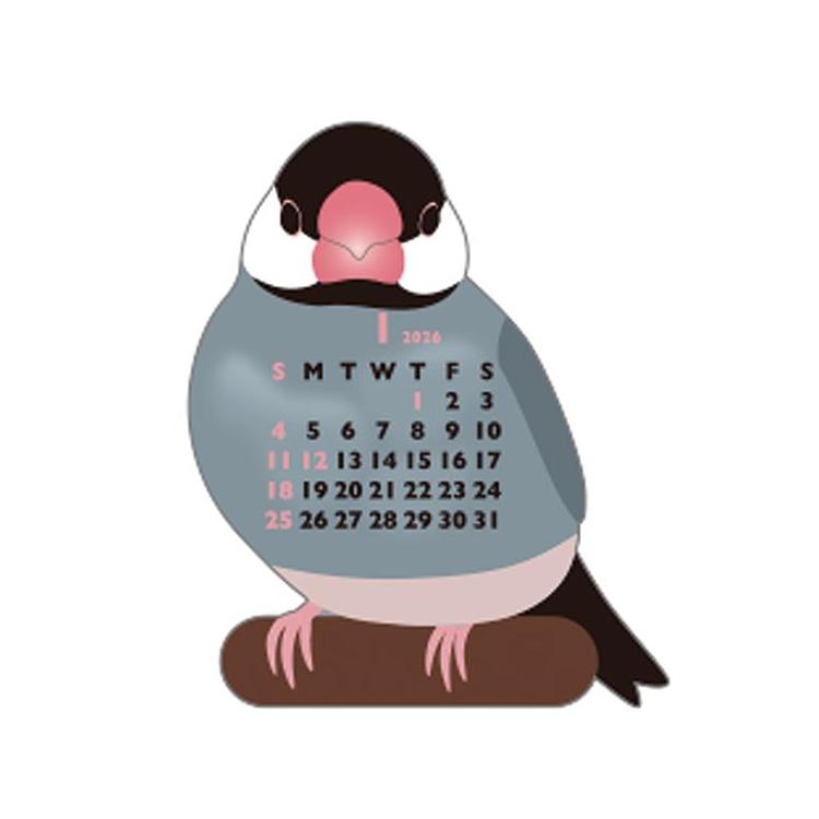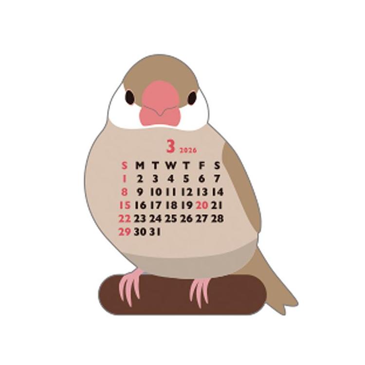 - 2026年1月始まりカレンダー 卓上 アニマルダイカット ミニ 文鳥