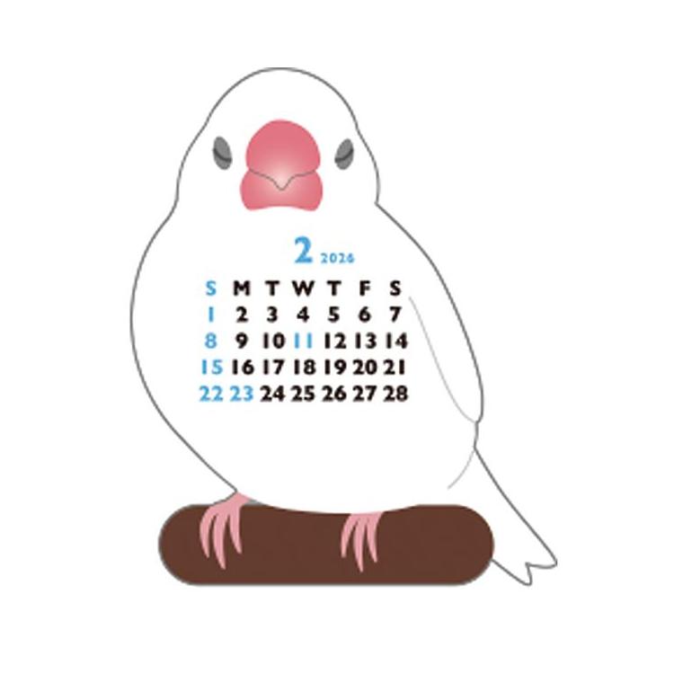 2026年1月始まりカレンダー 卓上 アニマルダイカット ミニ 文鳥