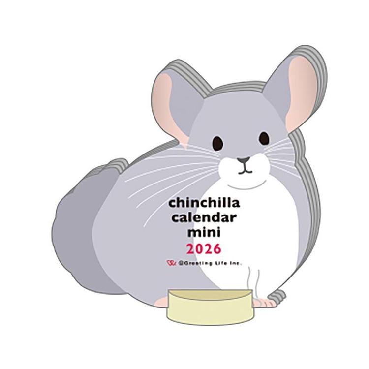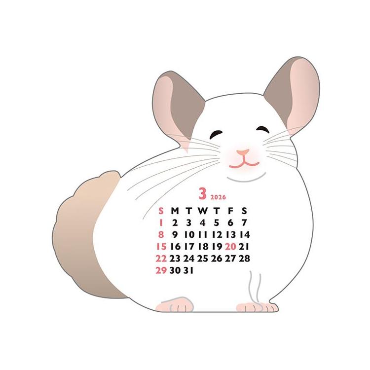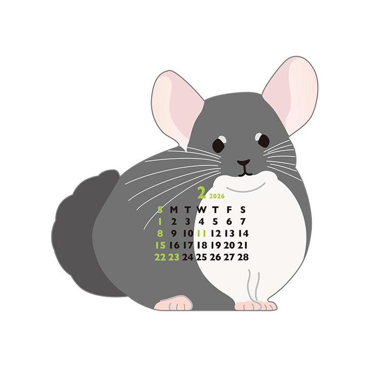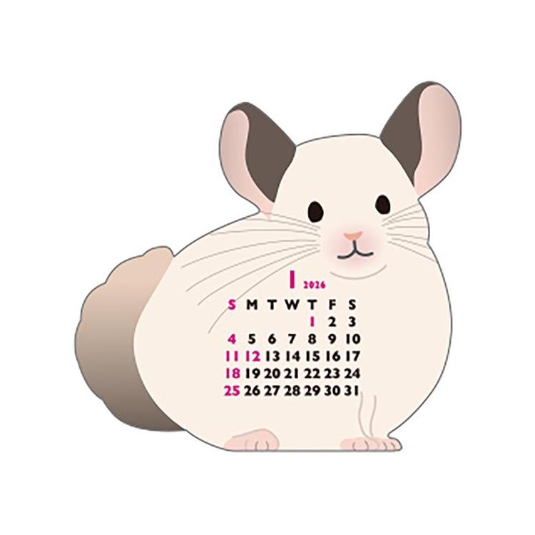 - 2026年1月始まりカレンダー 卓上 アニマルダイカット ミニ チンチラ