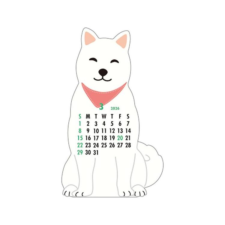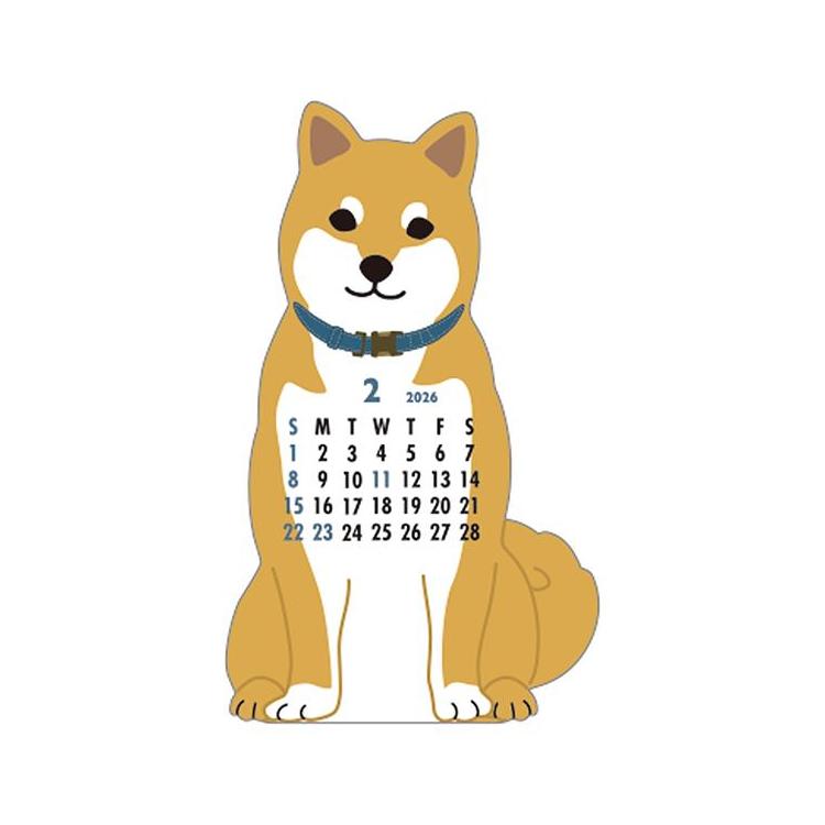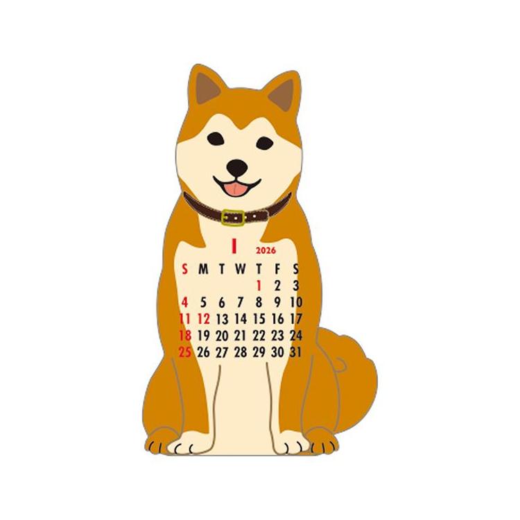 2026年1月始まりカレンダー 卓上 アニマルダイカット ジャパニーズドッグ