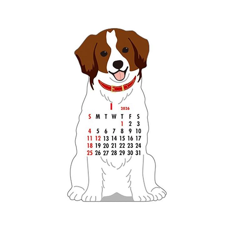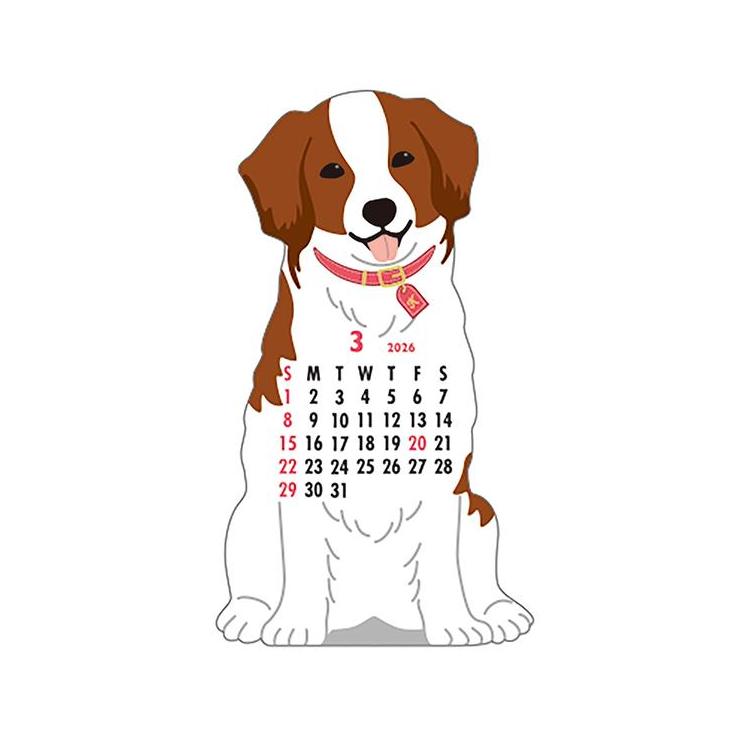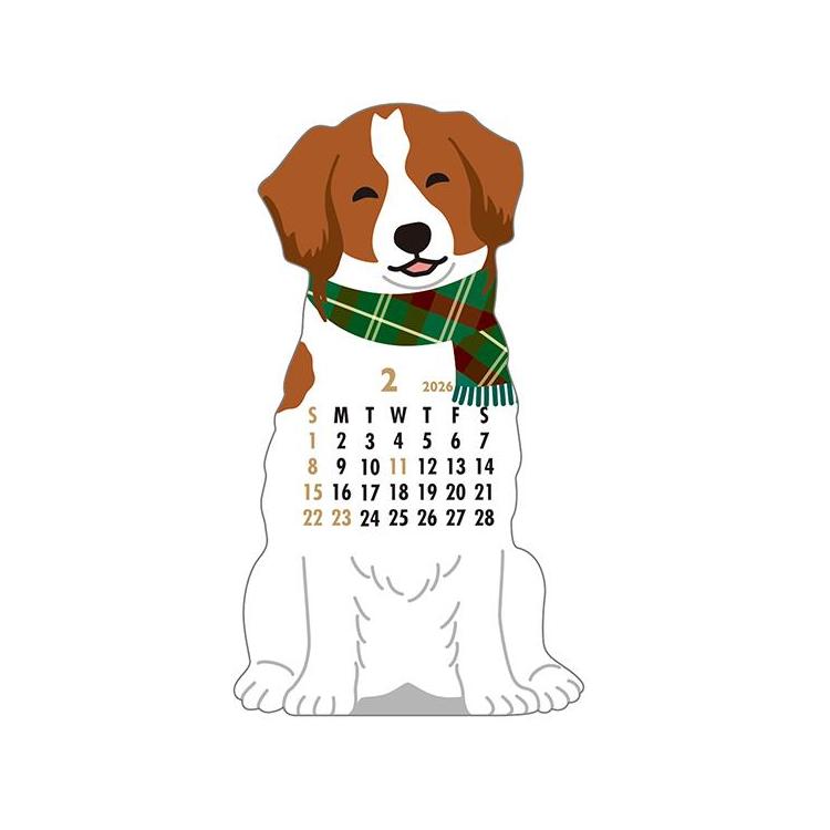 - 2026年1月始まりカレンダー 卓上 アニマルダイカット コーイケルホンディエ