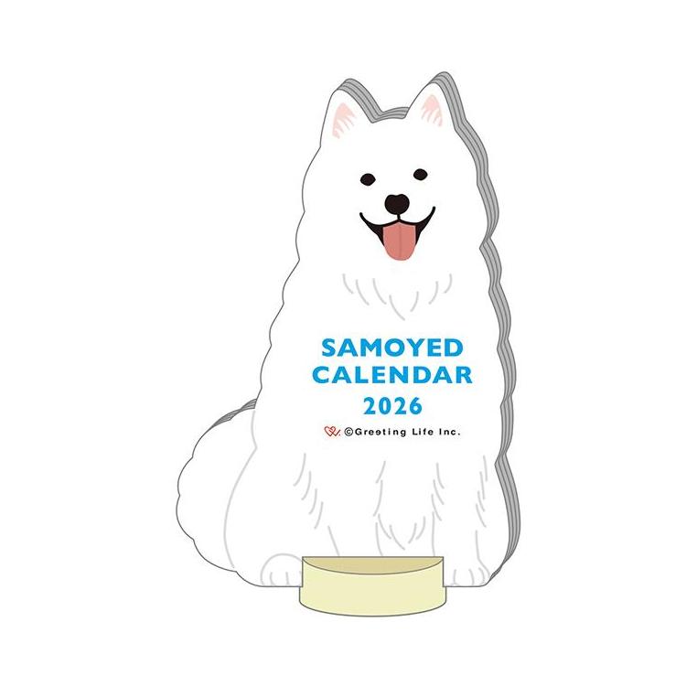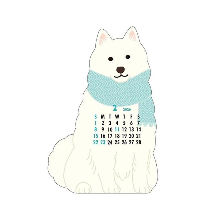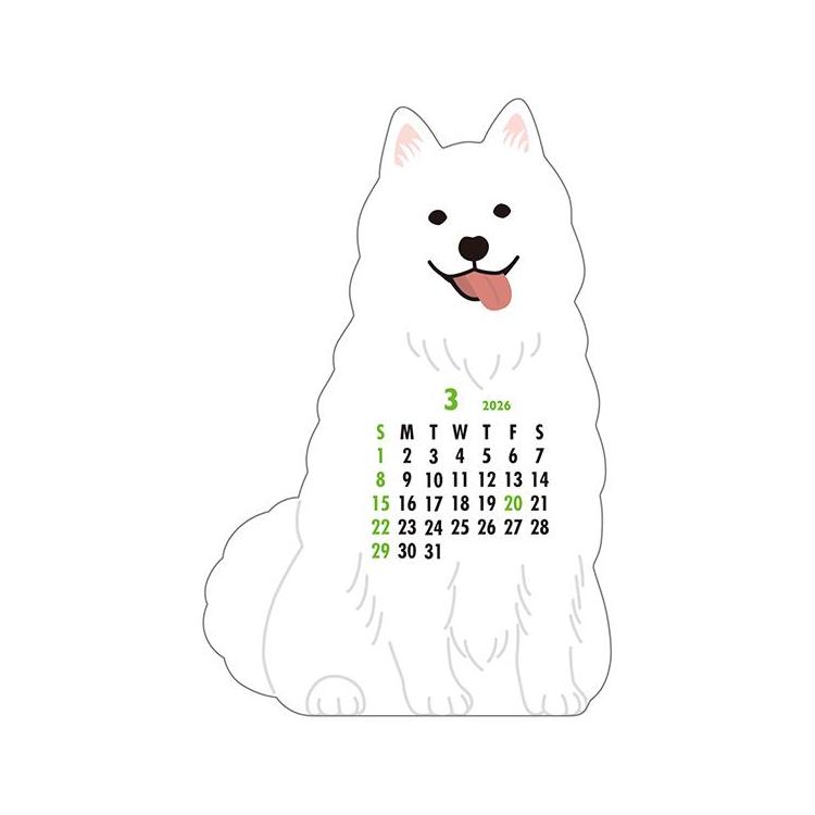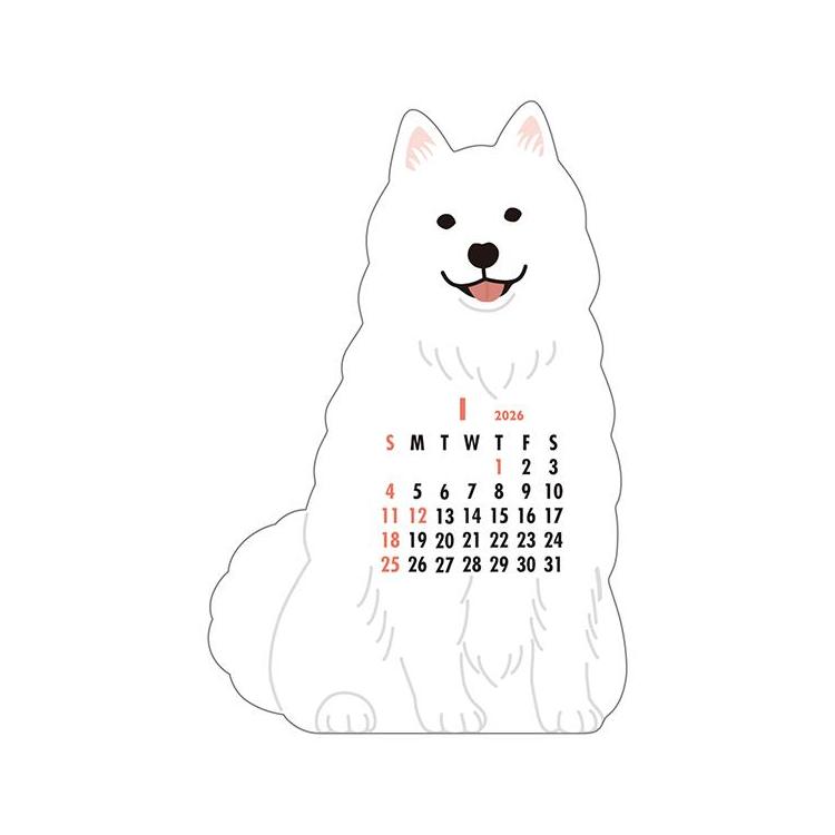 - 2026年1月始まりカレンダー 卓上 アニマルダイカット サモエド