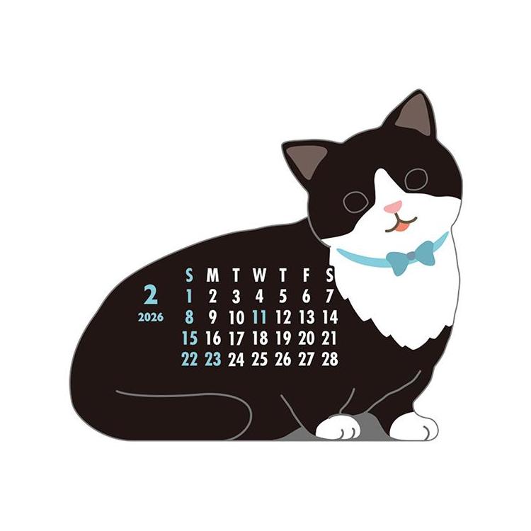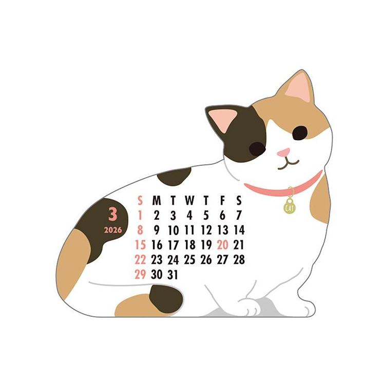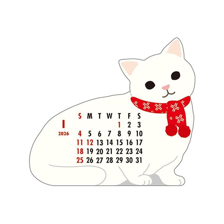 2026年1月始まりカレンダー 卓上 アニマルダイカット マンチカン