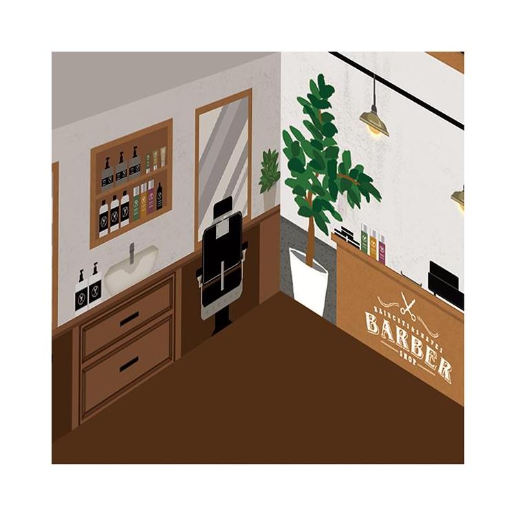 中面にも、イラストが描かれていて、理容店の店舗様子が描かれています。