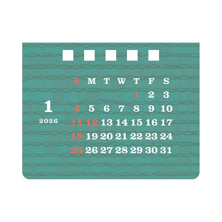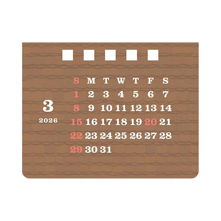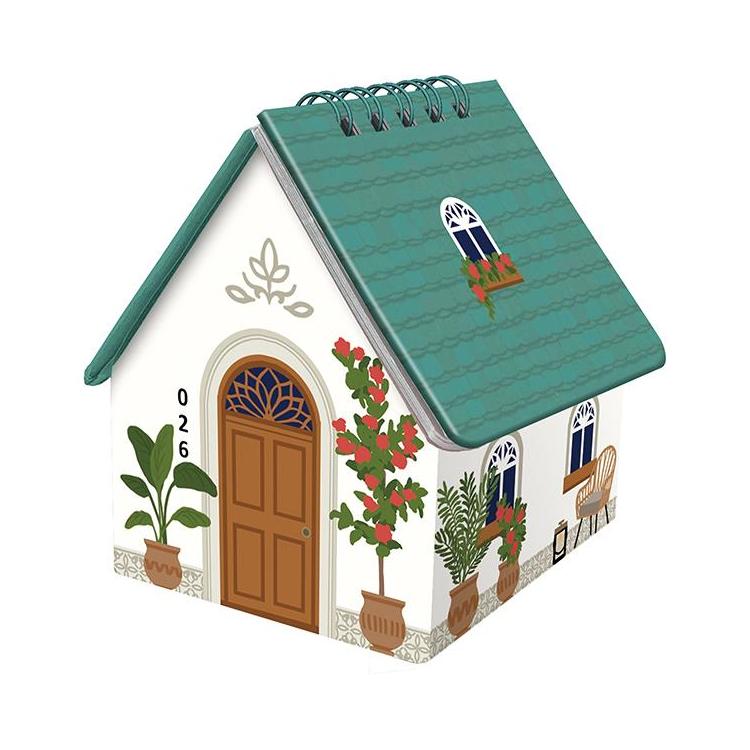 便利でかわいらしい小物入れのついた、ハウス型の卓上カレンダー。