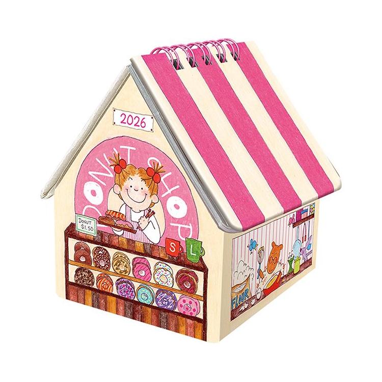 便利でかわいらしい小物入れのついた、ハウス型の卓上カレンダー。