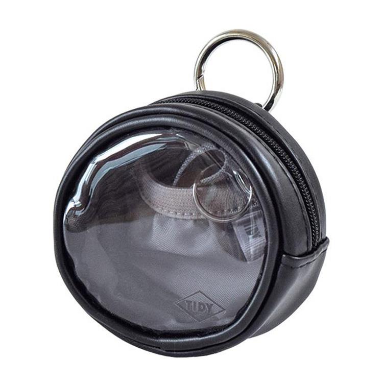 リュックやトート、ベルトループなどに取付けられる、カラビナ付きミニポーチ「タイディラウンドミニポーチ」。