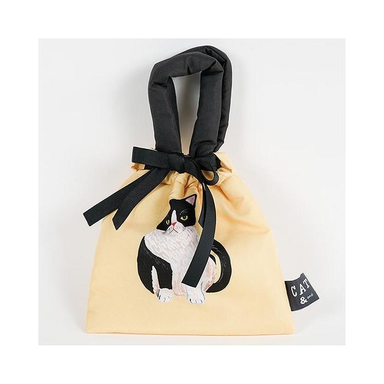- クッション巾着 そで山かほ子 CAT& イエロー