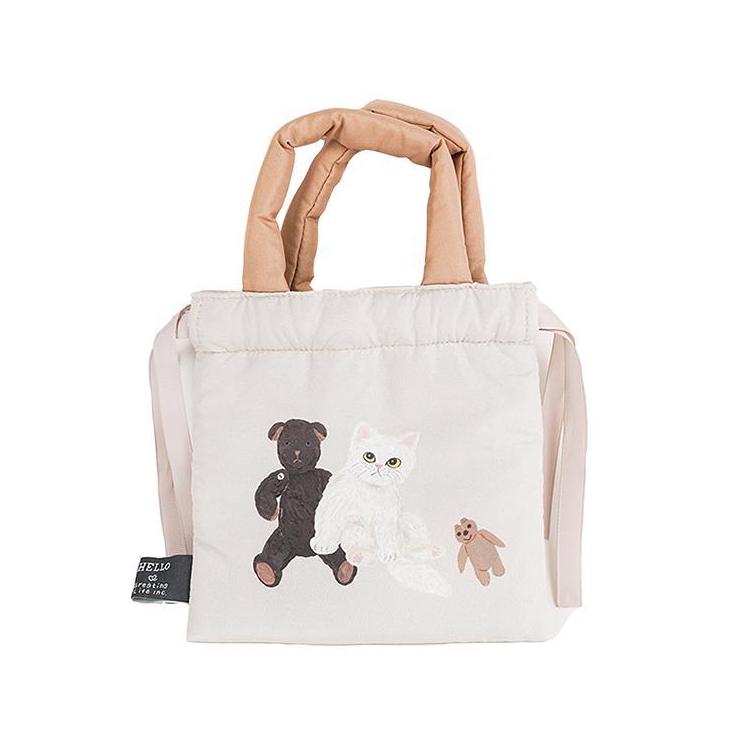 - クッション巾着 そで山かほ子 CAT& ベージュ