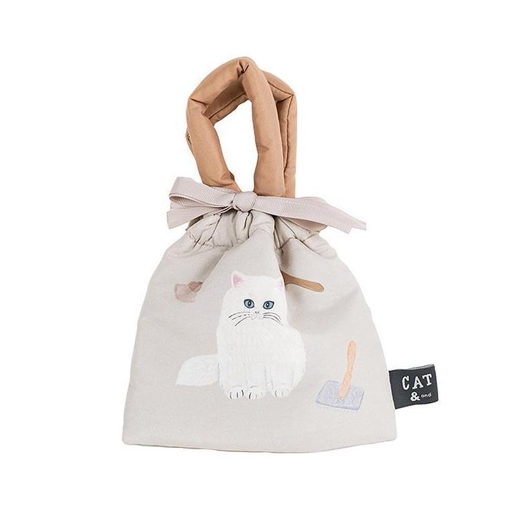 クッション巾着 そで山かほ子 CAT& ベージュ