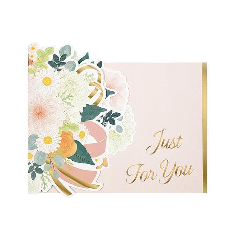 リボン部分を持って開くと立体的なブーケになる、ポップアップ仕掛けのメッセージギフトボード。