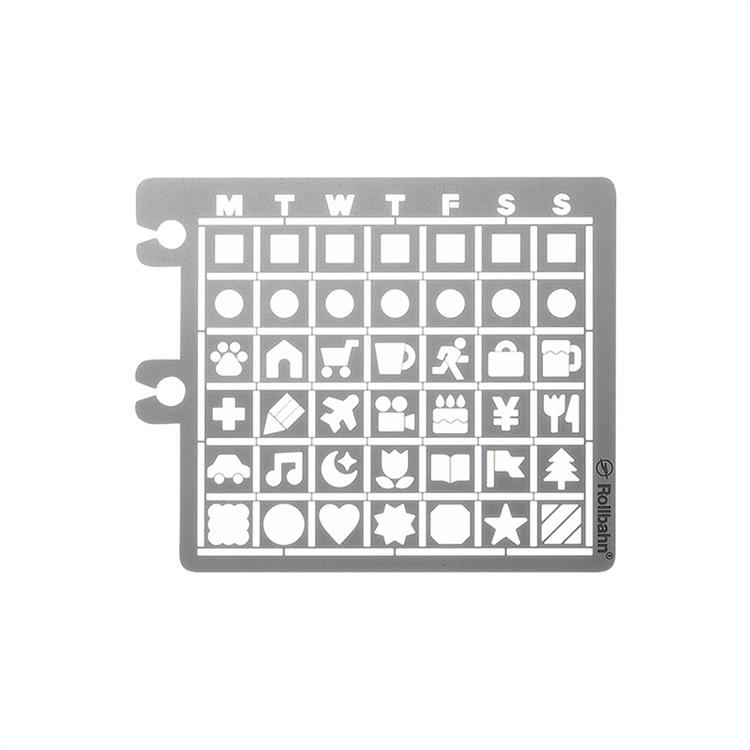 薄手のステンレス素材で作った、1ヵ月のカレンダーが描けるロルバーン専用テンプレート。