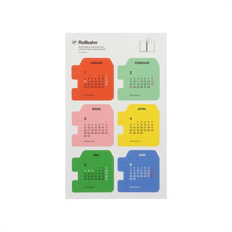 2026年1月~12月までのカレンダーを配した、ロルバーンブックマークと同じ形状の紙製カレンダーです。