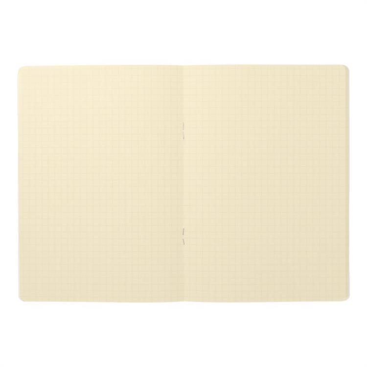 中面は64ページの5mm方眼で、インクのにじみや裏写りを抑えたクリーム色の上質紙を使用しています。