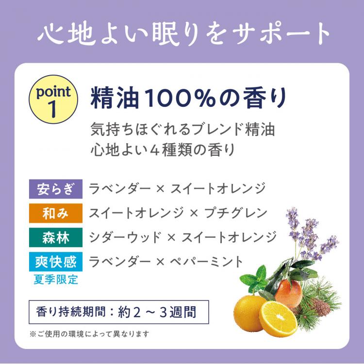 枕カバーの中に入れれば、天然アロマがふんわり香り、心地よい眠りをサポートします。