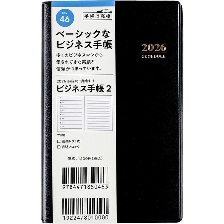 - 2026年1月始まり 週間レフト B7 ビジネス手帳2(46)黒