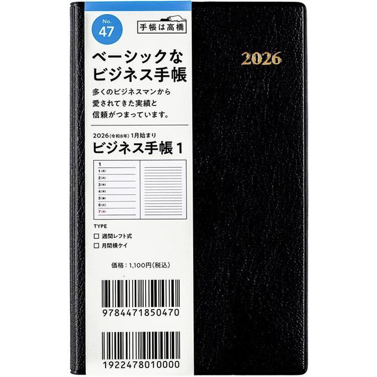 2025年11月始まり 週間レフト B7 ビジネス手帳1(47)黒